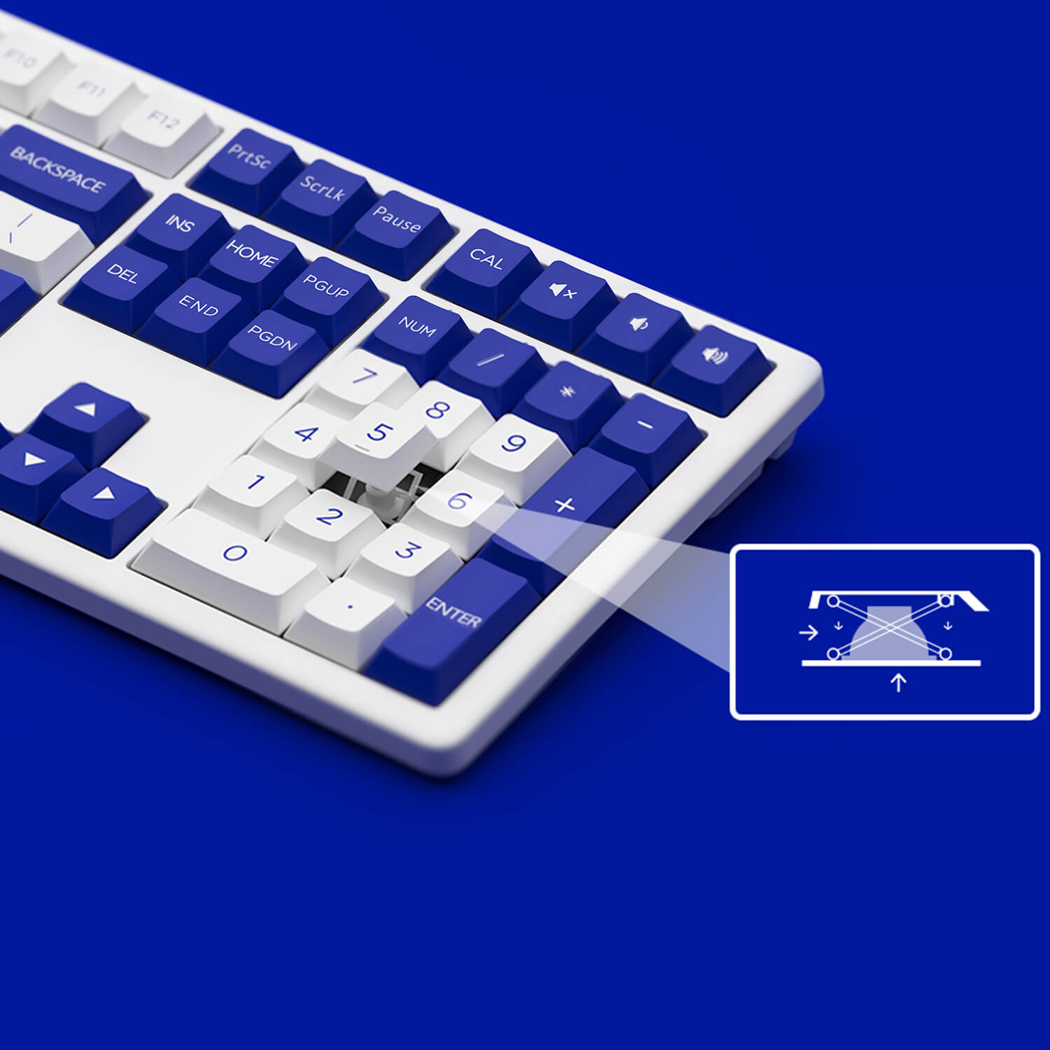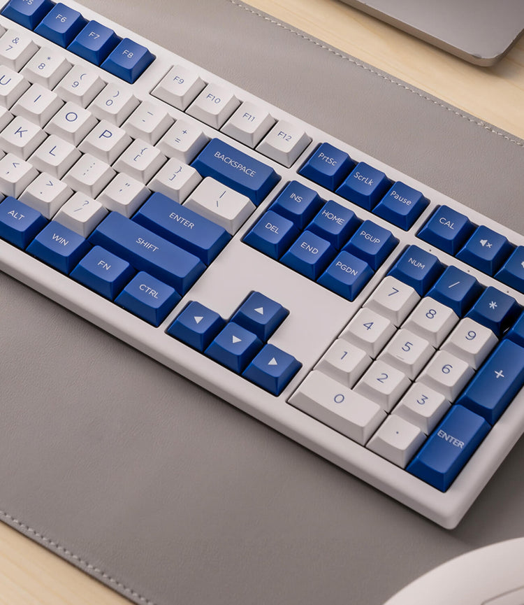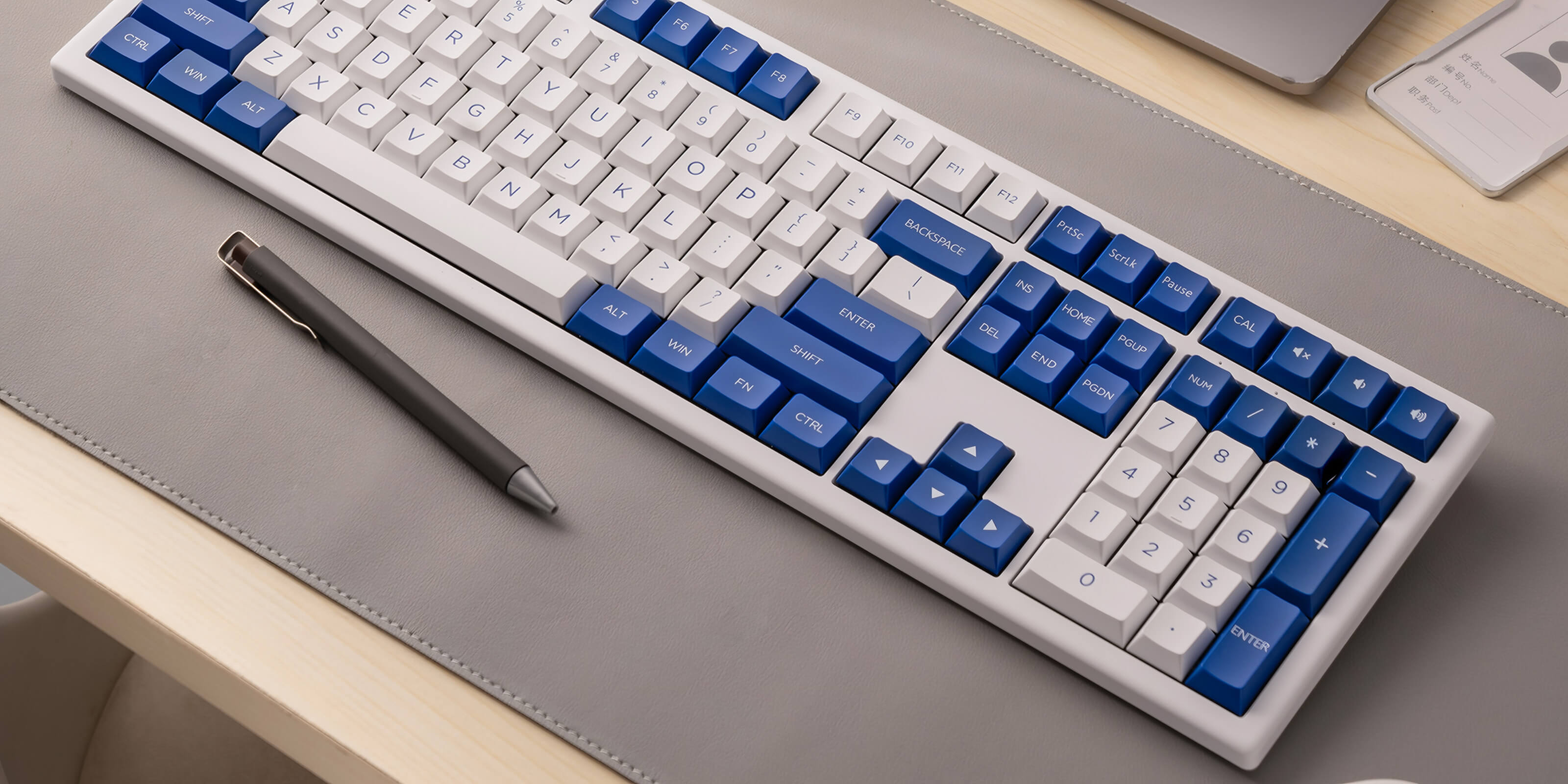 Die Tastatur in voller Größe mit 108 Tasten verfügt über einstellbare Füße, sodass Benutzer ihren Tippwinkel individuell anpassen können, um ein komfortableres und maßgeschneidertes Erlebnis zu erzielen.