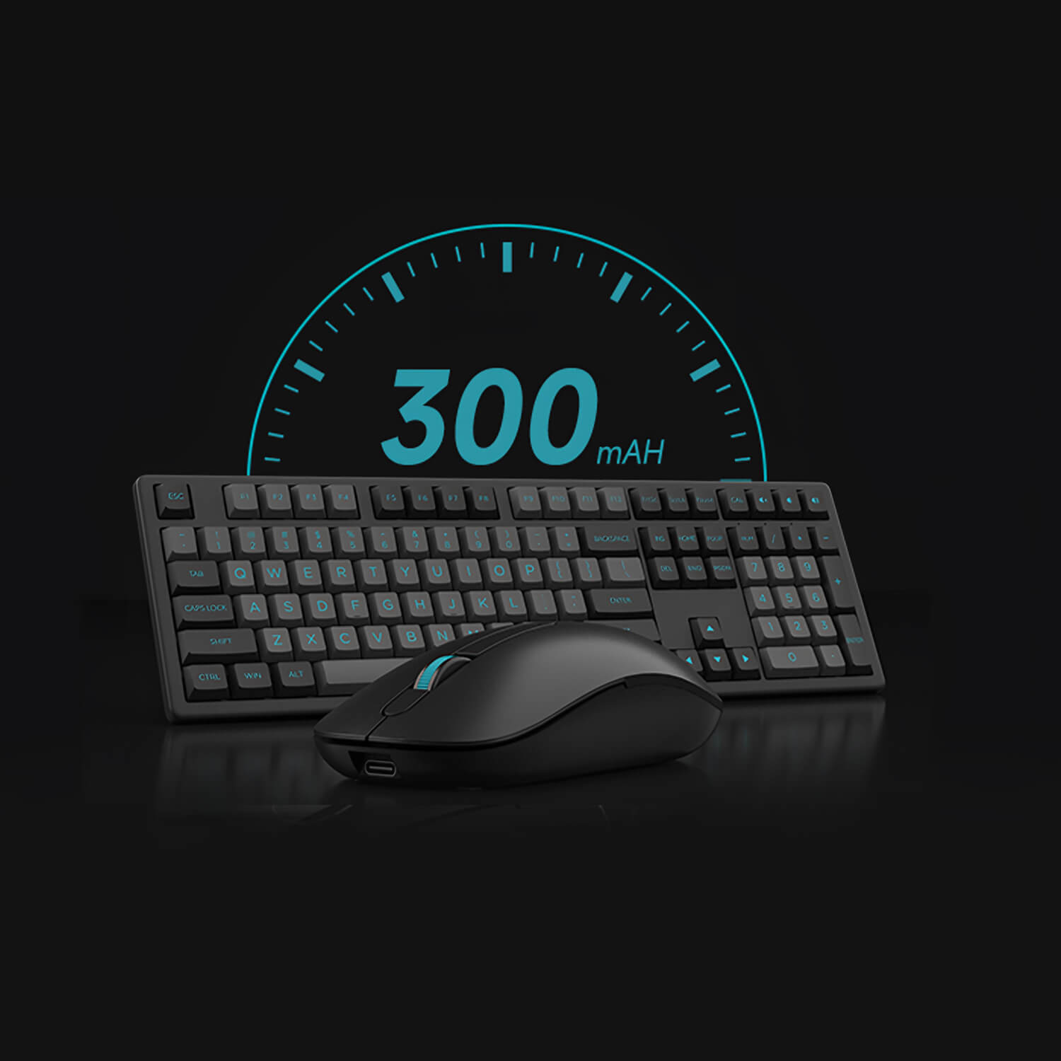 Tastatur und Maus verfügen beide über integrierte wiederaufladbare Lithiumbatterien mit 300 mAh. Genießen Sie bis zu 80 Stunden Dauerbetrieb mit der Tastatur und bis zu 40 Stunden mit der Maus mit einer einzigen Ladung. Verabschieden Sie sich vom lästigen Batteriewechsel und konzentrieren Sie sich auf das Wesentliche.