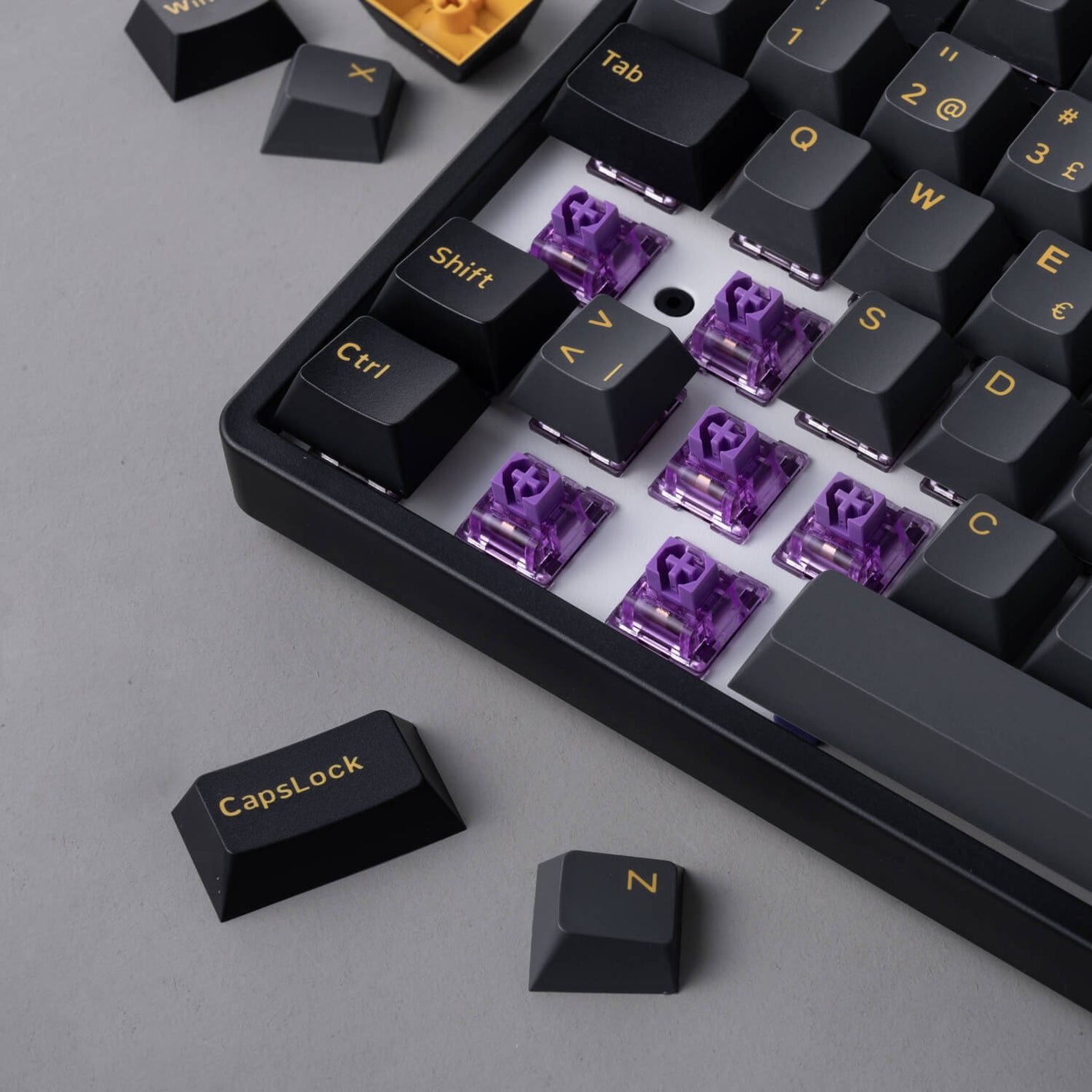 Hergestellt aus PBT und die Beschriftungen werden im Double-Shot-Verfahren hergestellt, einer der haltbarsten Beschriftungsmethoden, die Abnutzung oder Verfärbung bei Gebrauch verhindert.