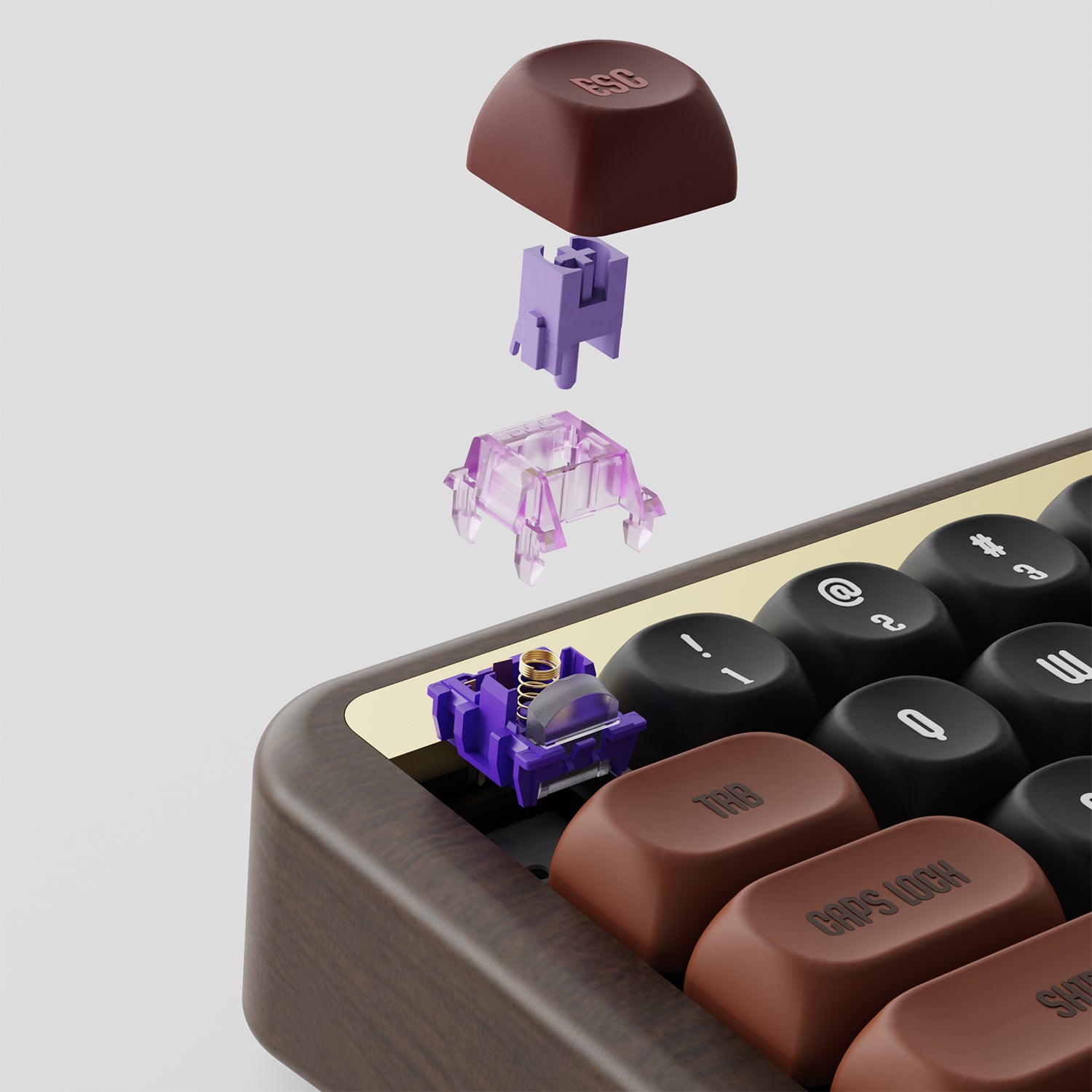 Equipped with precision-tuned satellite switches, the MU01 Autumn keyboard delivers an enhanced typing experience with excellent feedback and gorgeous sound. Each keystrokeMU01 comes with purple plate-mounted stabilizers and is also compatible with screw-in stabilizers. resonates with a symphony of precision and refinement, delivering an unparalleled typing experience that sets new standards.