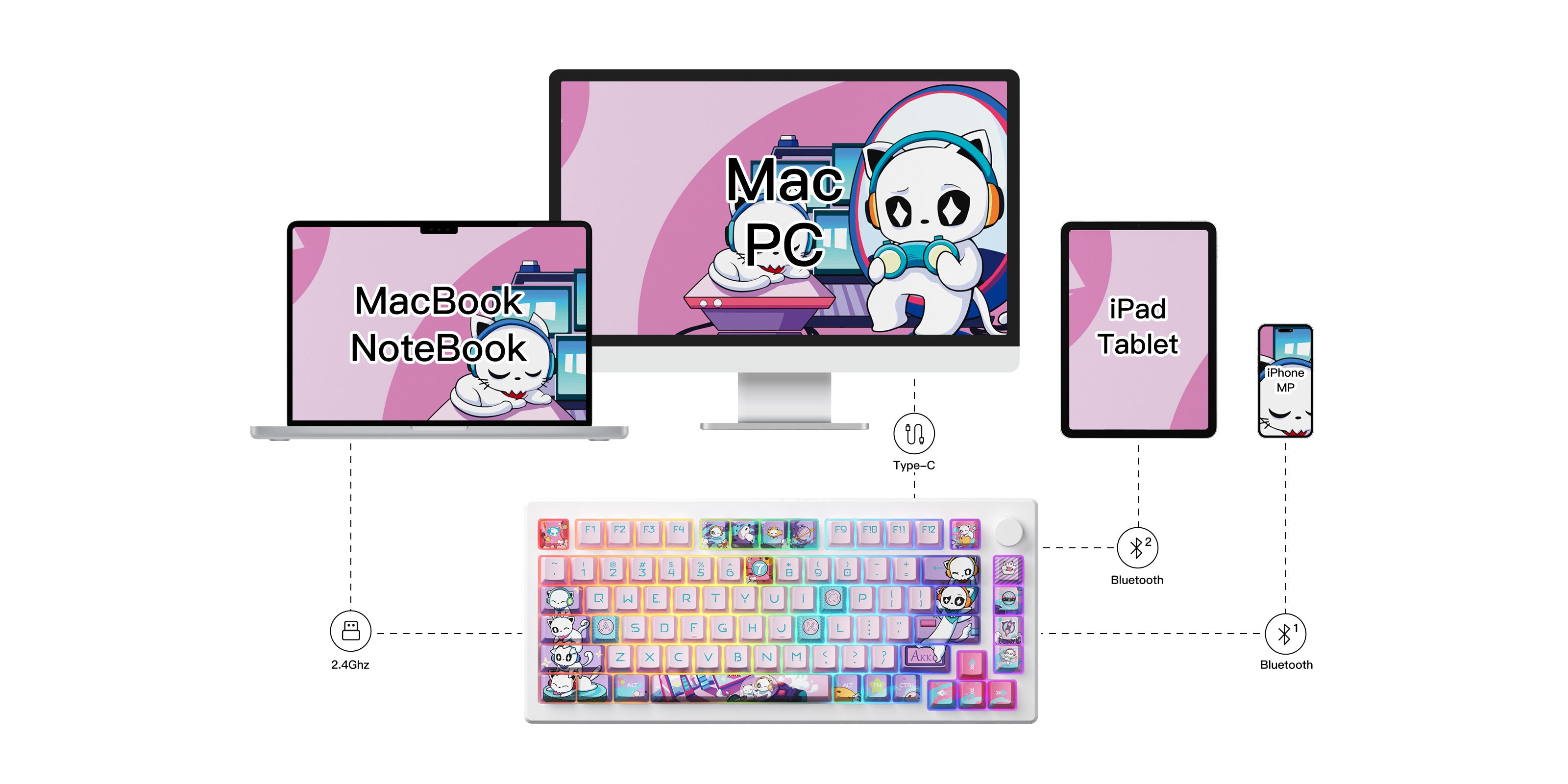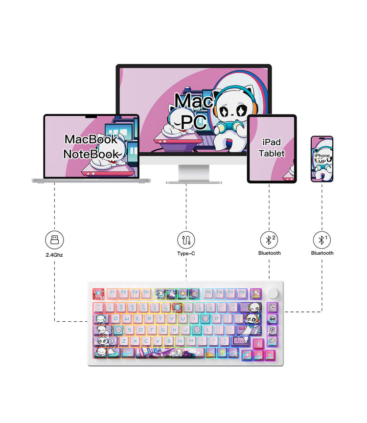 HE & RT & DKS + RGB LED backlight + Hot-swappable + Bluetooth 5.0 + 2.4G Wireless + Wired (USB-C Mode) All in One!