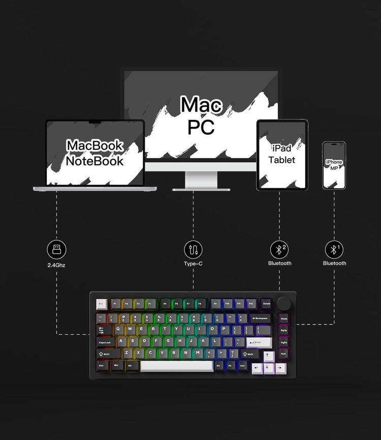 75% Mechanical aluminum keyboard with button for quick disassembly