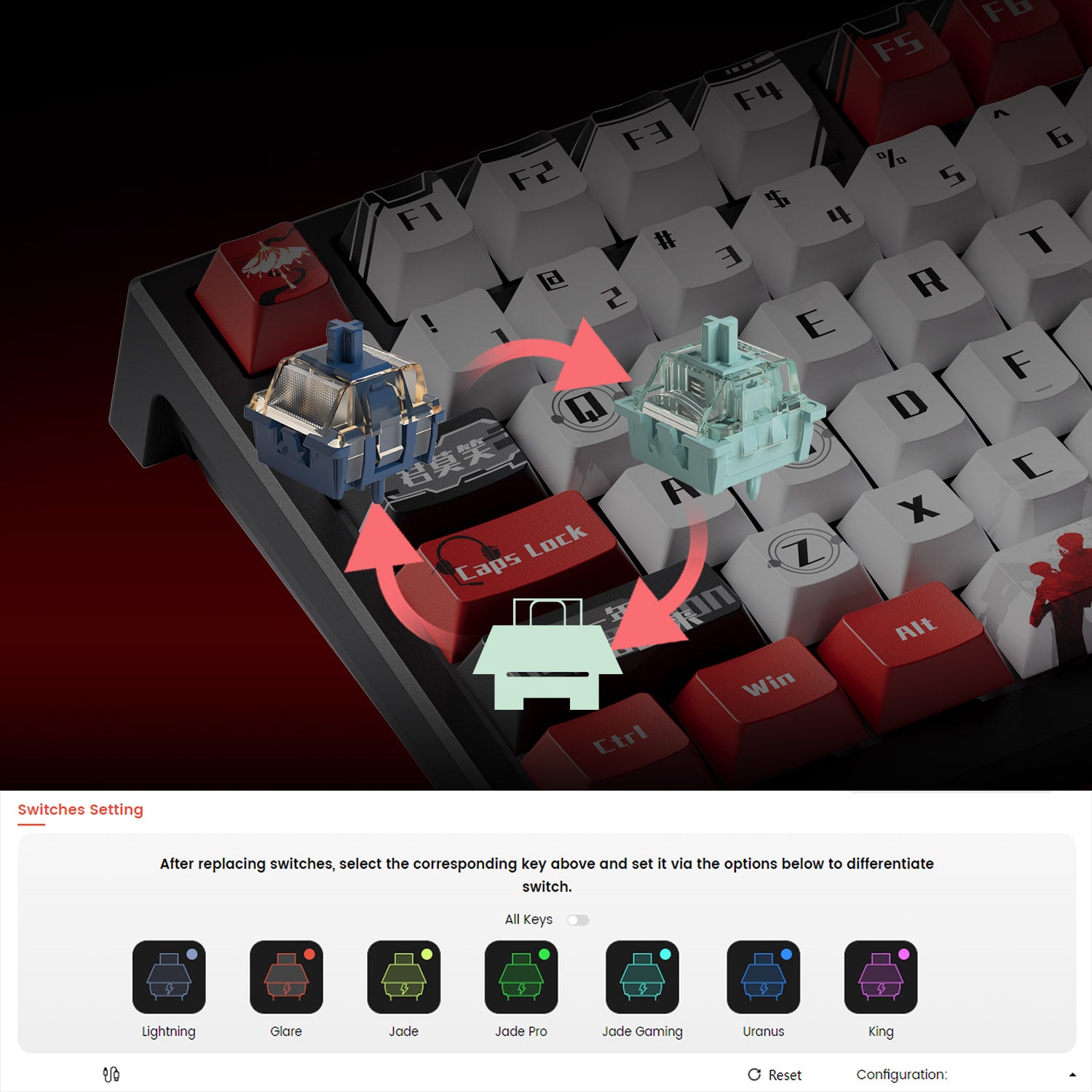 TAC75 HE Magnetic Keyboard - The King's Avatar supports five third-party magnetic switches, which can be selected and calibrated via the Akko Driver. A custom mix of switches per key is also possible.