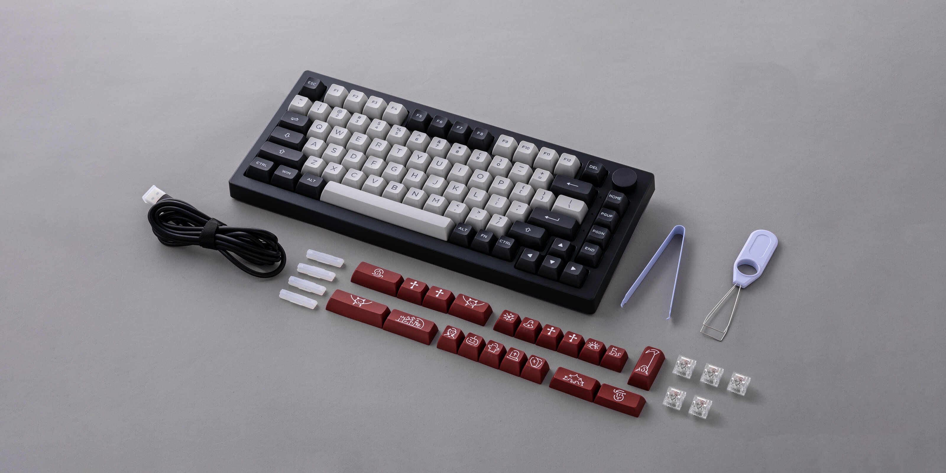Tastatur×1, Handbuch×1, Kabel×1, zusätzliche Tastenkappen, Tastenkappenabzieher×1, Schalterabzieher×1, Staubschutzhülle×1