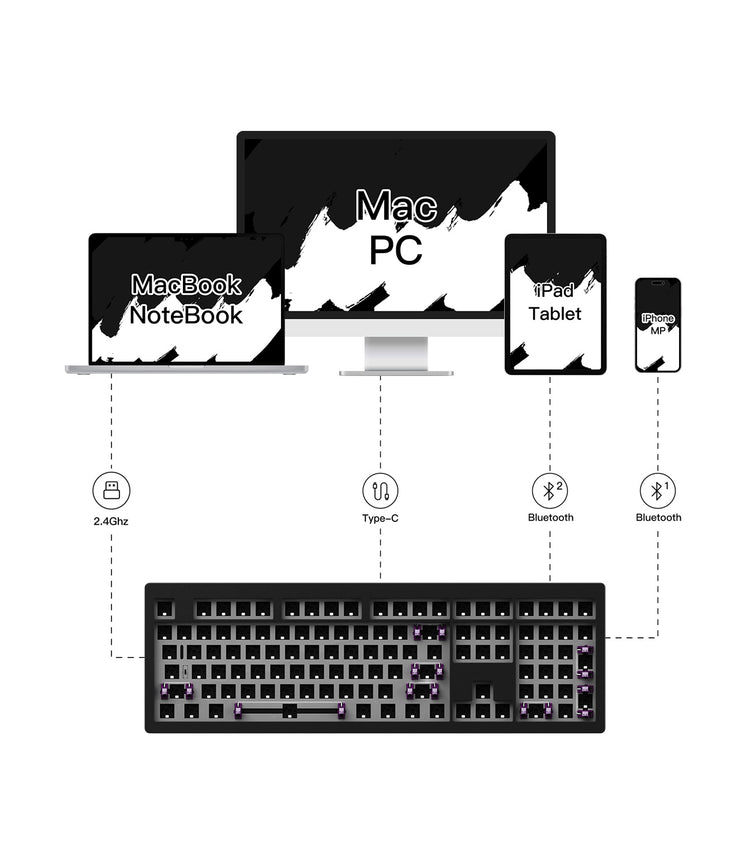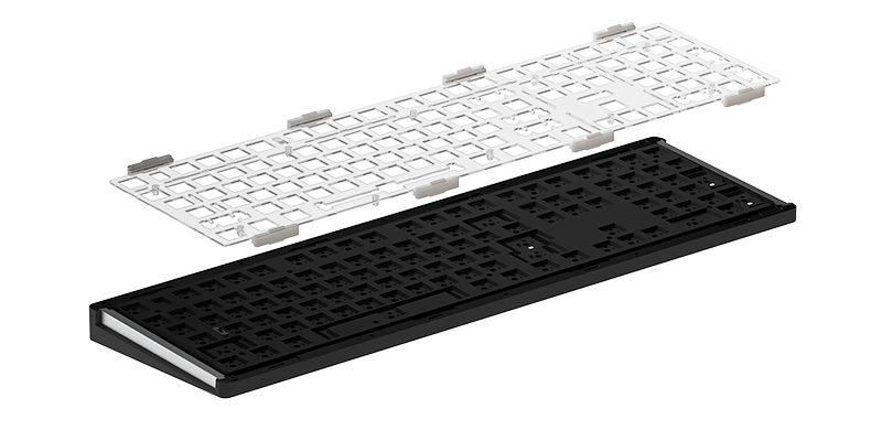 M5W is a 108-key south-facing aluminum keyboard, a 100% barebones kit with plenty of function keys and a numeric keypad. This design allows for comfortable typing and is aimed at gamers, office workers, programmers and typists in different situations.