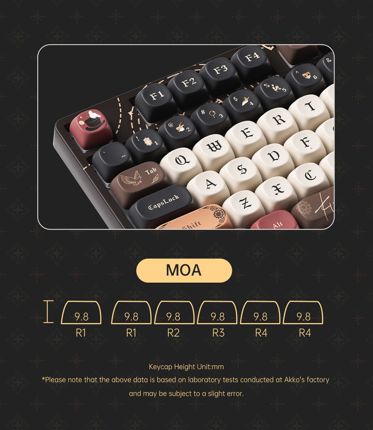These keycaps feature vibrant, colorfast designs inspired by Lord of the Mysteries . The dye-sublimation process ensures the lettering is deeply embedded so it stays clear even with intensive use. Resistant to shine and abrasion, the keycaps maintain their pristine appearance and offer an improved typing feel.