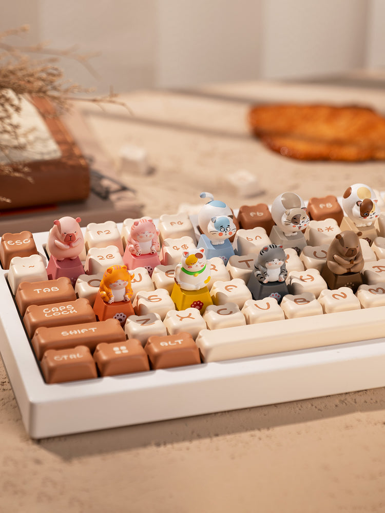 Akko's original Zoo keycaps feature 9 irresistibly cute animals: 7 cats and 2 capybaras.