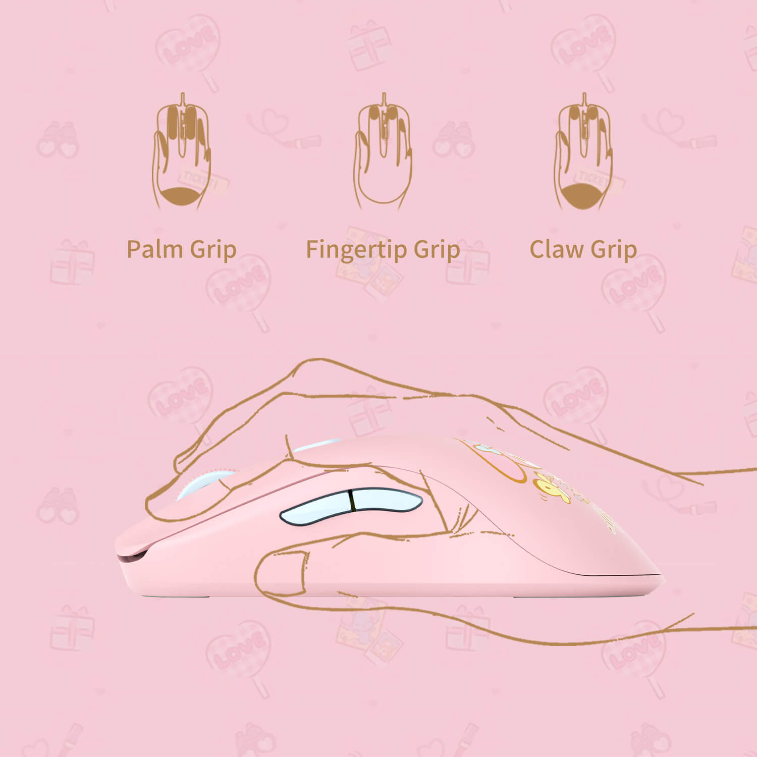 The ergonomic design of the AG ONE 8K My melody mouse allows for faster and smoother operation and a comfortable fit in the palm of your hand without compromising flexibility. Experience increased comfort during extended use with a secure and natural grip for precise control.