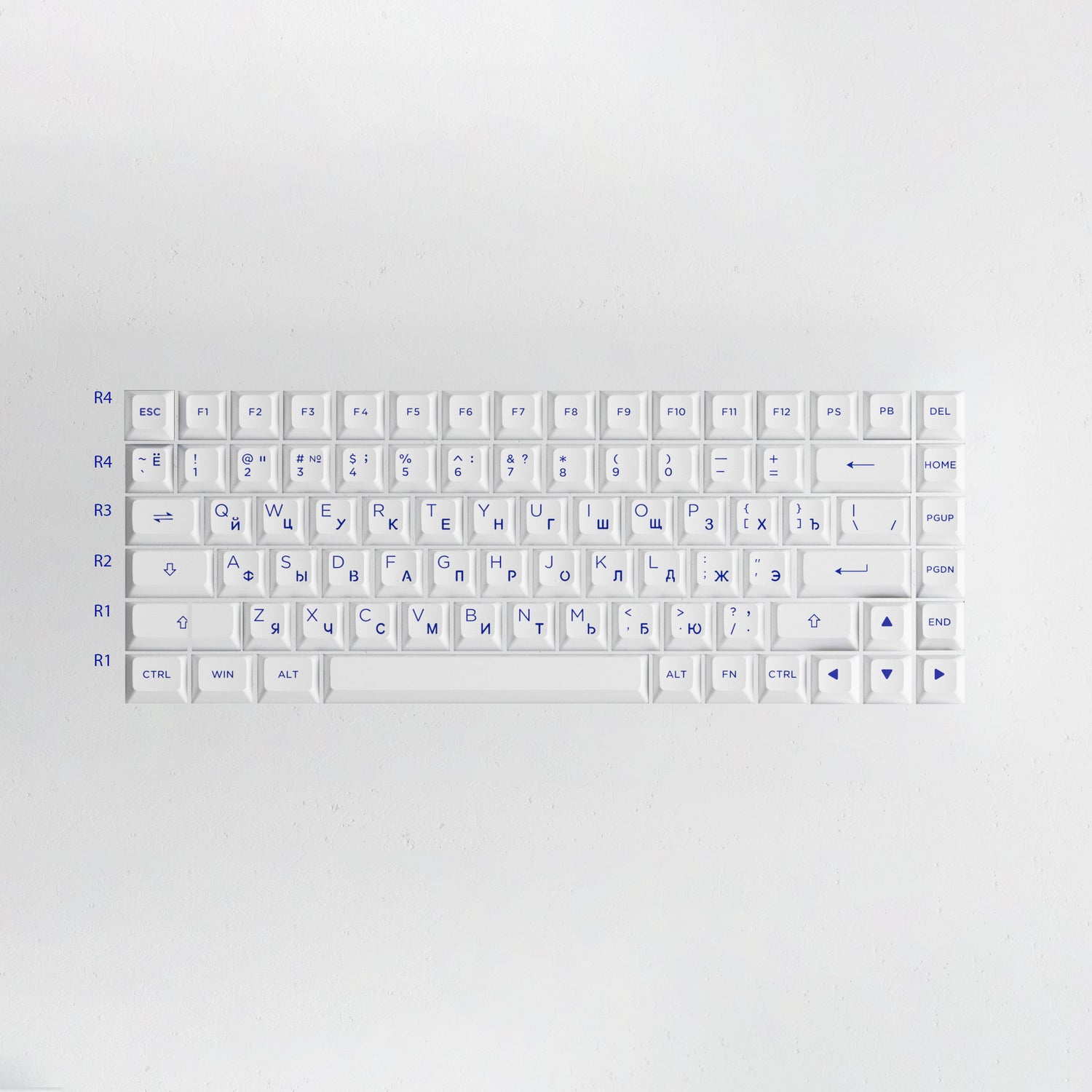 Cyrillic Keycaps | Blue White | PBT Double-shot