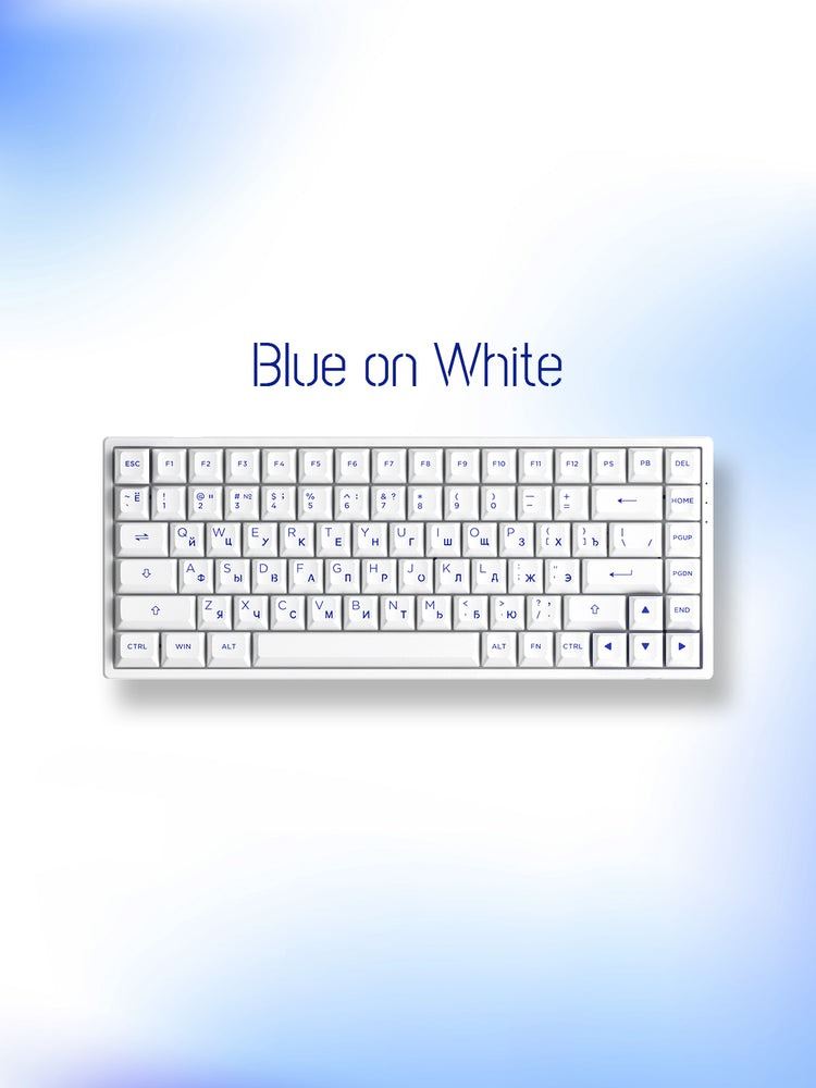 Das Blue on White Cyrillic Tastenkappen Set (84-Tasten) passt ausgezeichnet zu den beliebten 75% und 65% Layouts.