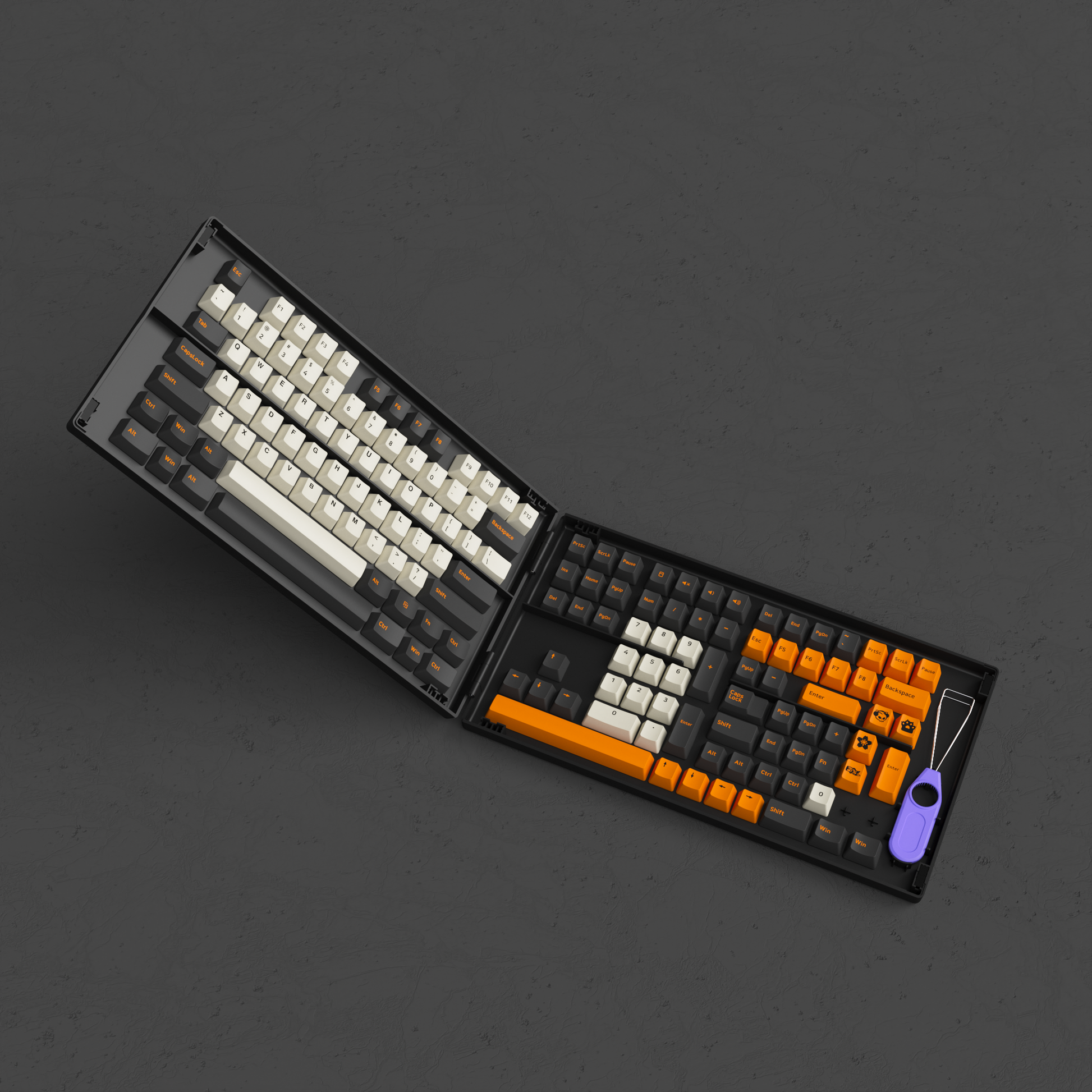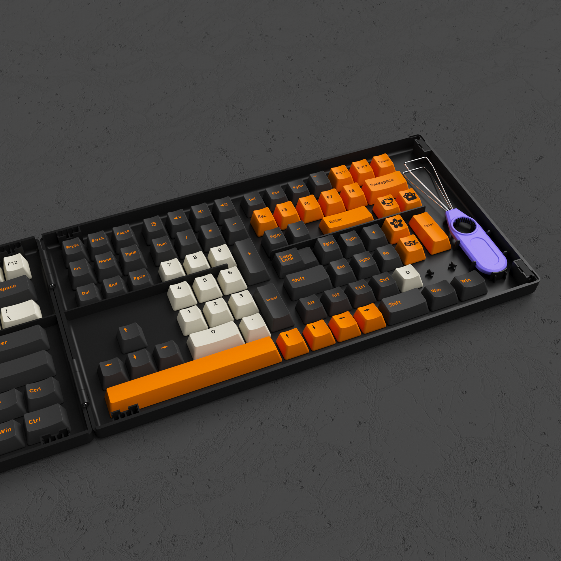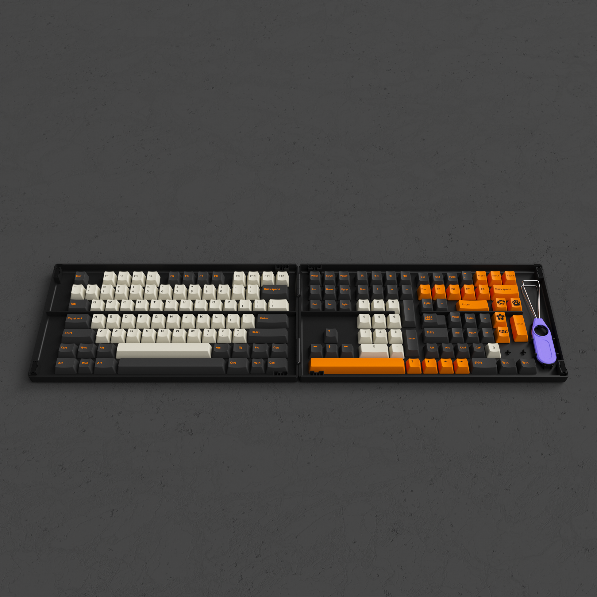 AKKO Carbon Retro keycaps set adopts a few vintage color combinations of carbon black and off-white and a hint of burnt orange to present a retro feel. The design evokes a sense of nostalgia for the Old West, like a steam train powering through the last leg of a long journey. Well-packed keycaps set with a custom storage box can be an ideal gift for anyone who’s into colors.