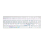 Die Tastatur verfügt über eine weiße LED-Hintergrundbeleuchtung, die für bessere Sichtbarkeit und einen stilvollen, minimalistischen Look sorgt – ideal zum Tippen oder Spielen bei Nacht.