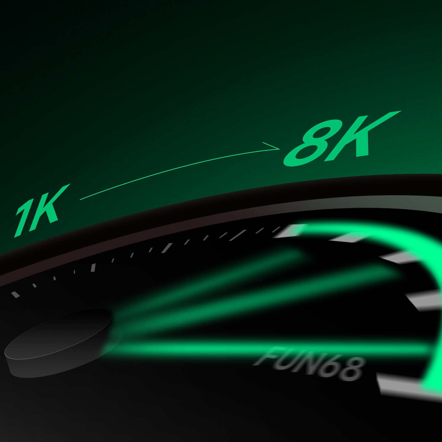 Die FUN68 unterstützt eine Abtastrate von 8.000 Hz für extrem niedrige Latenzzeiten und sofortige Reaktionsfähigkeit.
