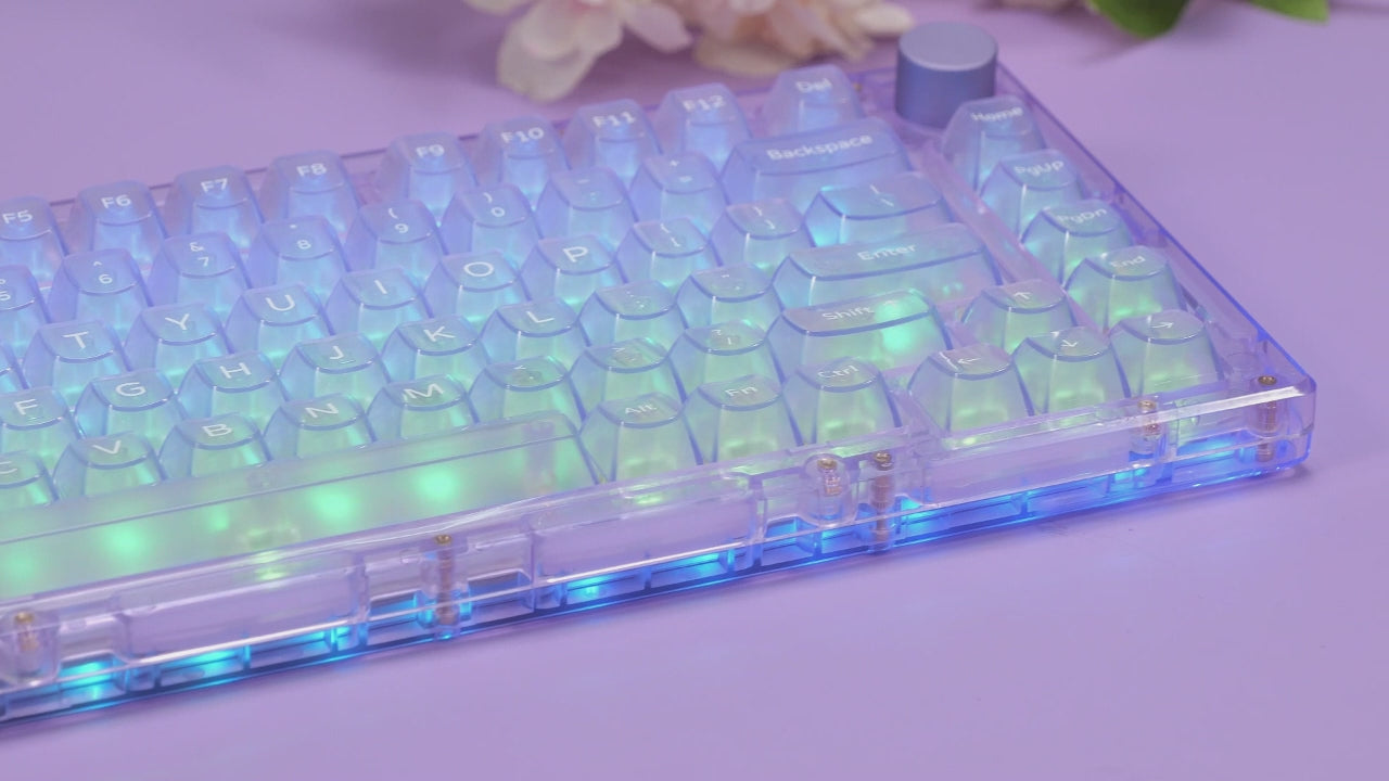 Experience a new typing pleasure with the MonsGeek mechanical keyboard. The transparent PC keycaps show the mechanics under each key, while the Akko V3 Crystal Pro switches offer precise and satisfying keystrokes. The acrylic body adds elegance and modernity. With 20 backlight modes and customizable RGB effects, you can create a personalized typing atmosphere. The ICE75 offers flexibility with two mounting types, allowing you to switch between the gasket structure and the top mounting option.