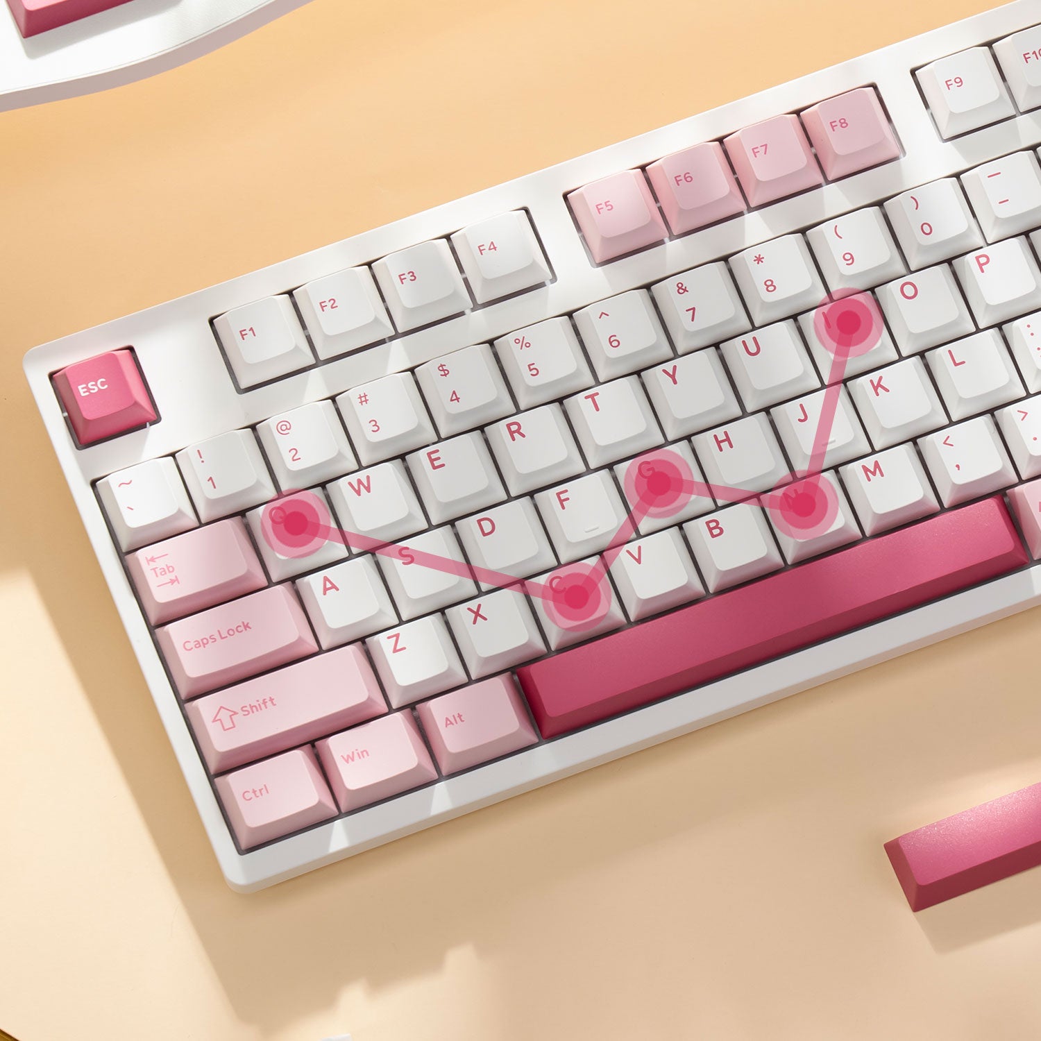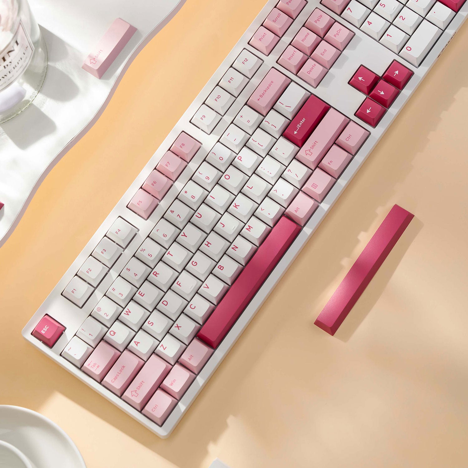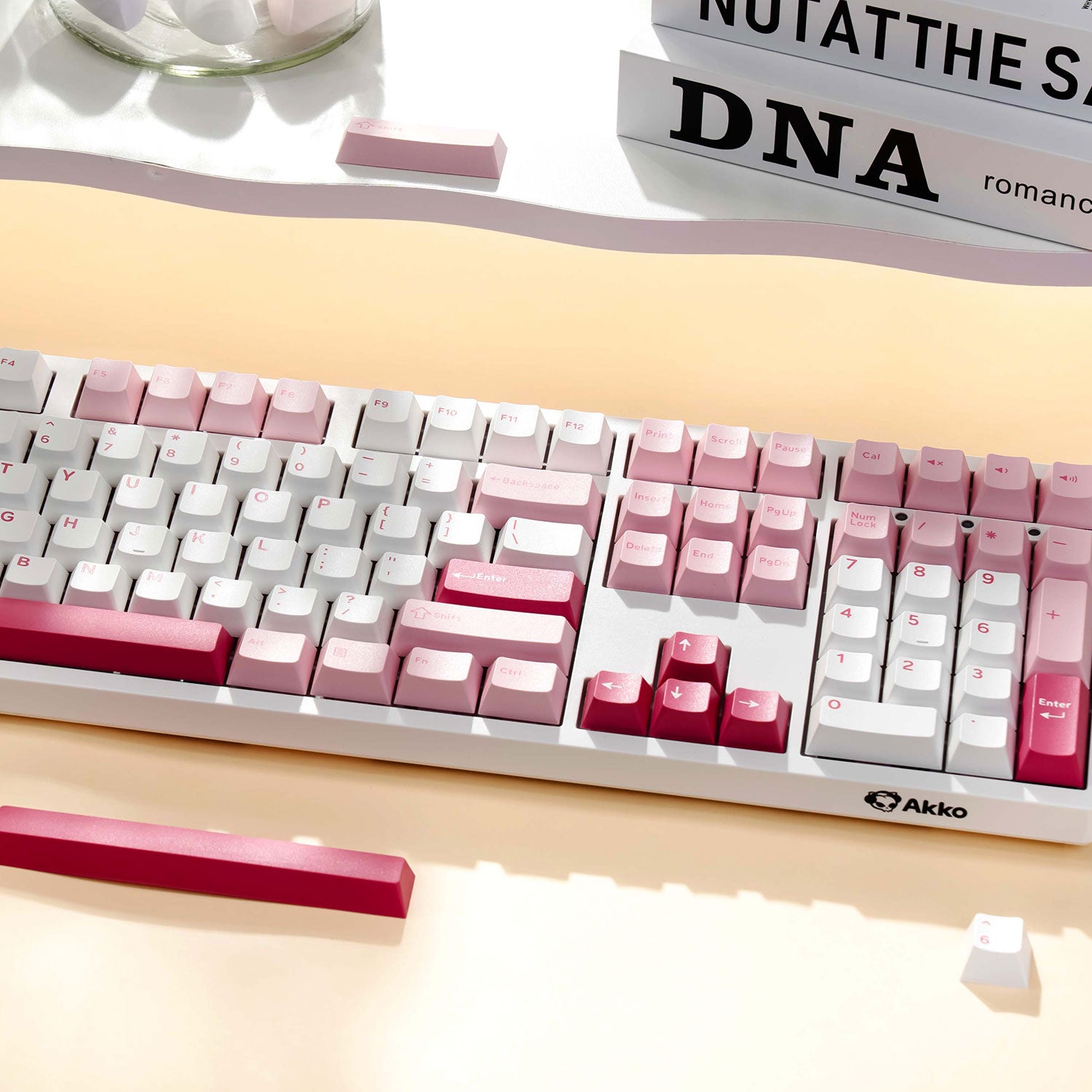 Verbessern Sie Ihr Tipperlebnis mit der 100 %-Tastatur Prunus Lannesiana 3108V3. Diese Tastatur mit atemberaubender Ästhetik verfügt über ein wunderschönes rosa Finish, das jedem Arbeitsplatz eine charmante Note verleiht.