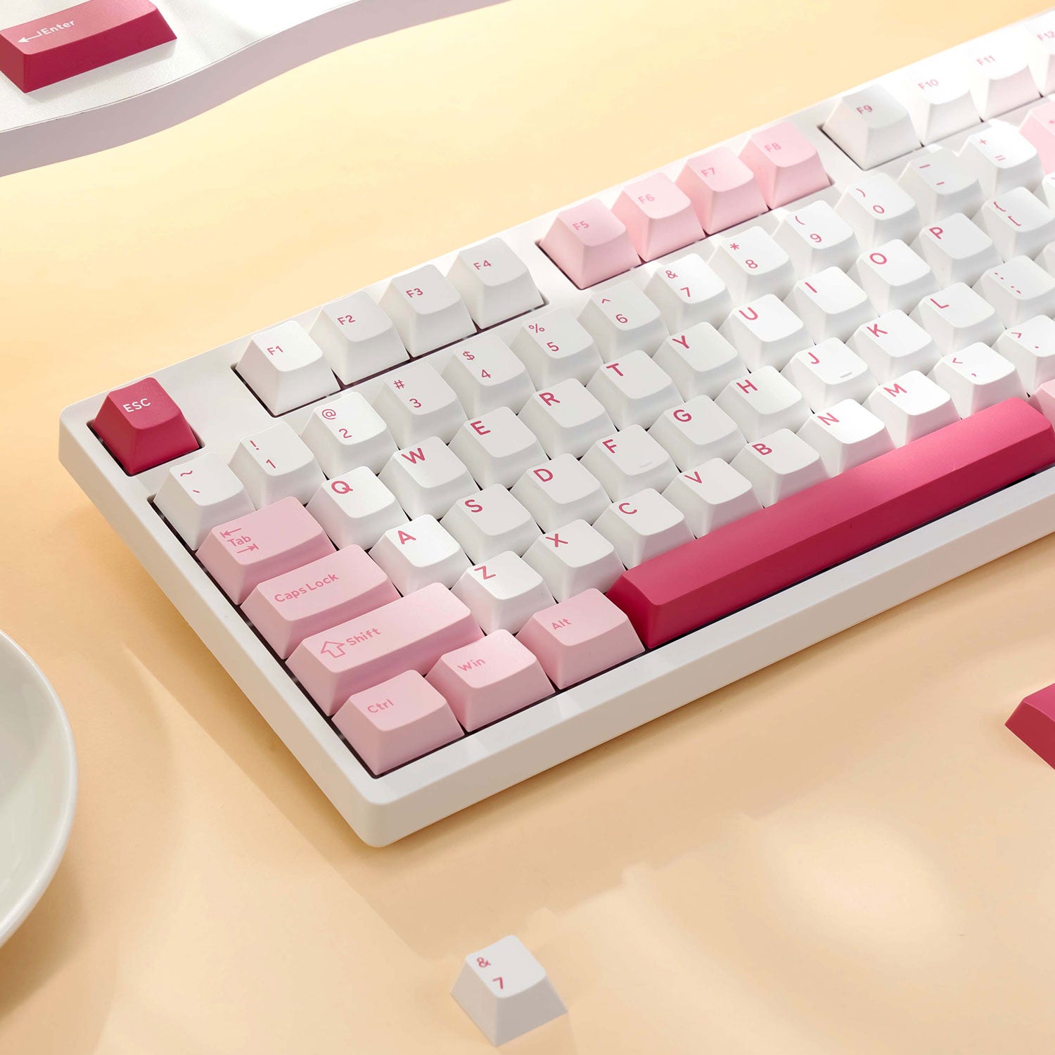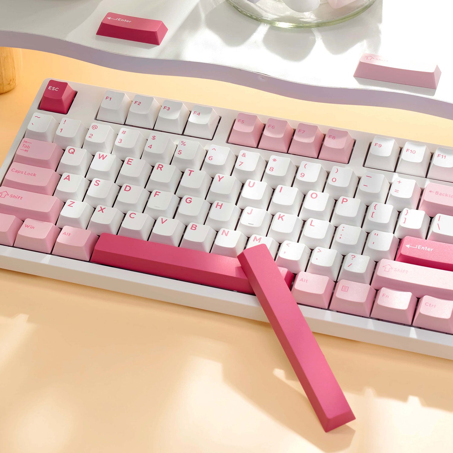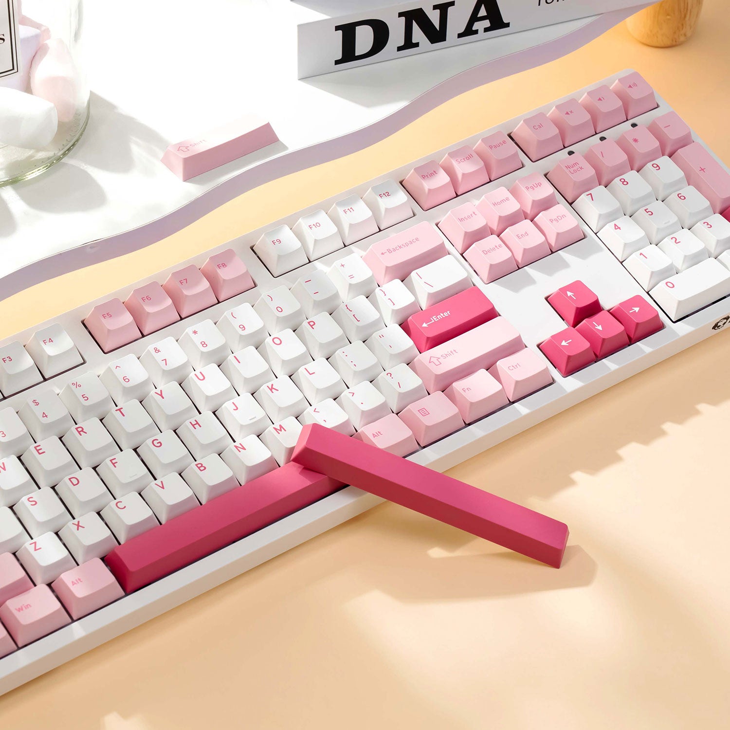 Verbessern Sie Ihr Tipperlebnis mit der 100 %-Tastatur Prunus Lannesiana 3108V3. Diese Tastatur mit atemberaubender Ästhetik verfügt über ein wunderschönes rosa Finish, das jedem Arbeitsplatz eine charmante Note verleiht.