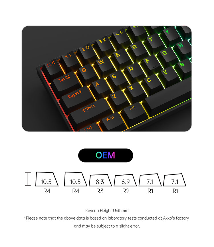 Die PBT-Tastenkappen zeichnen sich durch eine außergewöhnliche Ölbeständigkeit aus, die das gesamte Tipperlebnis verbessert und gleichzeitig eine lange Sichtbarkeit der Legenden gewährleistet.