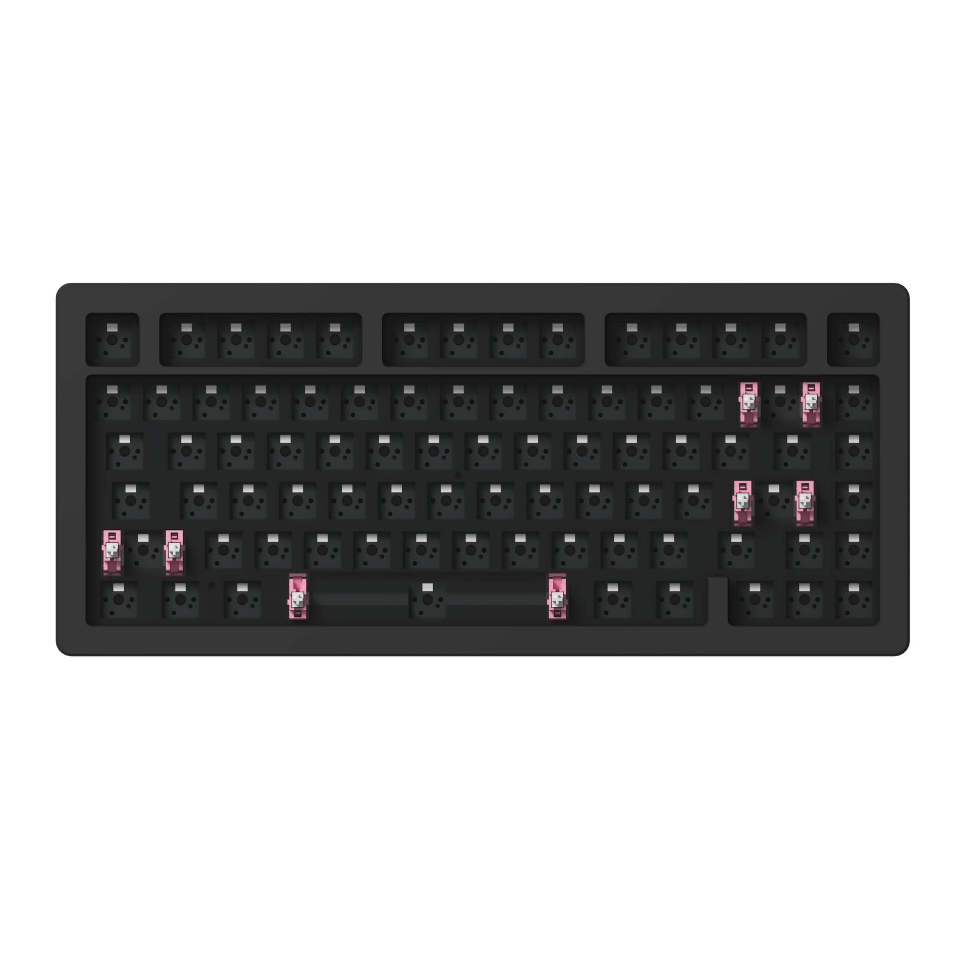 Diese Tastatur ist eine Barebone-Tastatur und erfordert einen einfachen Zusammenbau. Switches und Tastenkappen sind separat erhältlich.