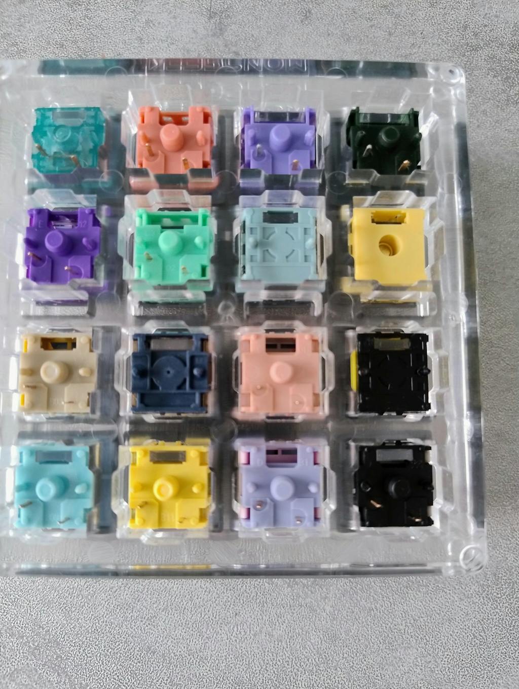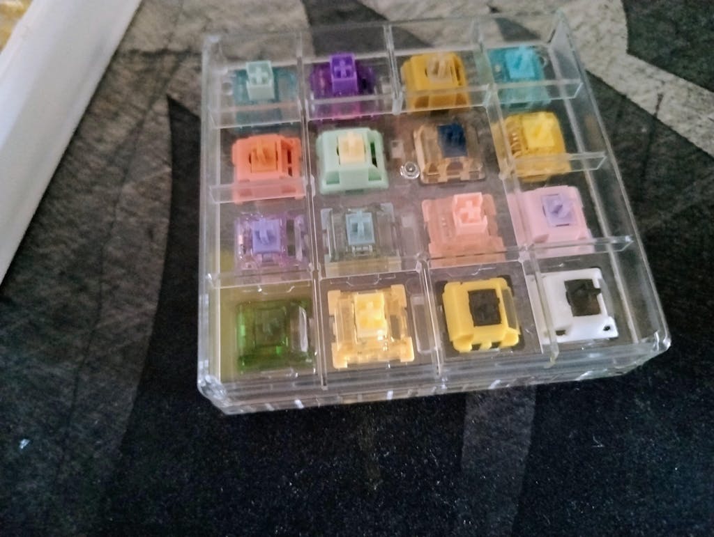 Arrivato (con calma) dentro una scatolina di cartoncino dentro una scatola sovradimensionata senza alcuna imbottitura. Non è presente il coperchio. 1 switch cherry, 2 TTC, 2 Gateron e il resto switch Akko, 16 in totale, misti... tutti colorati ma senza nessuna legenda/didascalia/riferimento (non ho trovato neanche corrispondenza con le immagini sopra)... quindi alla fine ho 16 switch un po' tutti uguali che se volessi ordinarne un set dovrei andare a simpatia di colore...