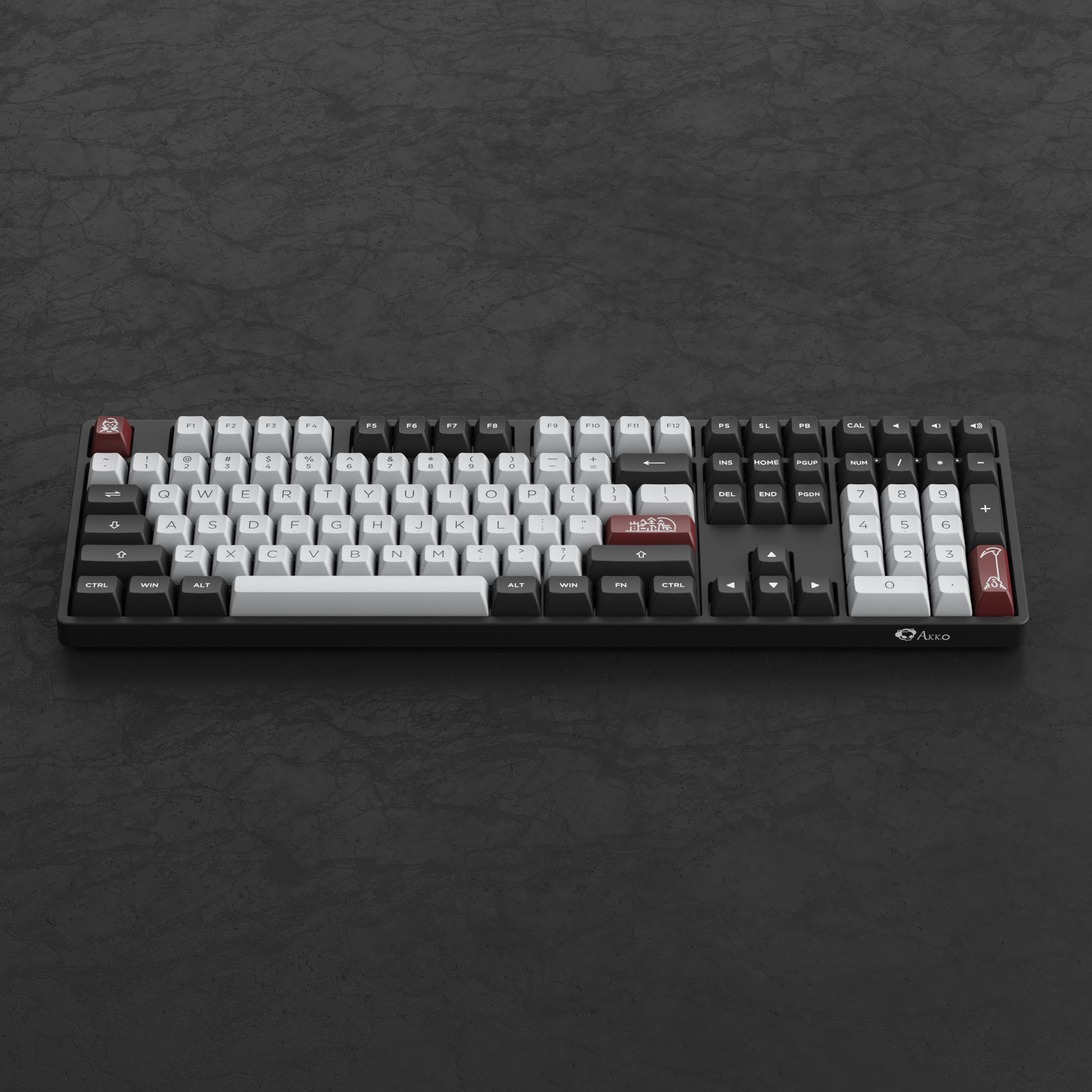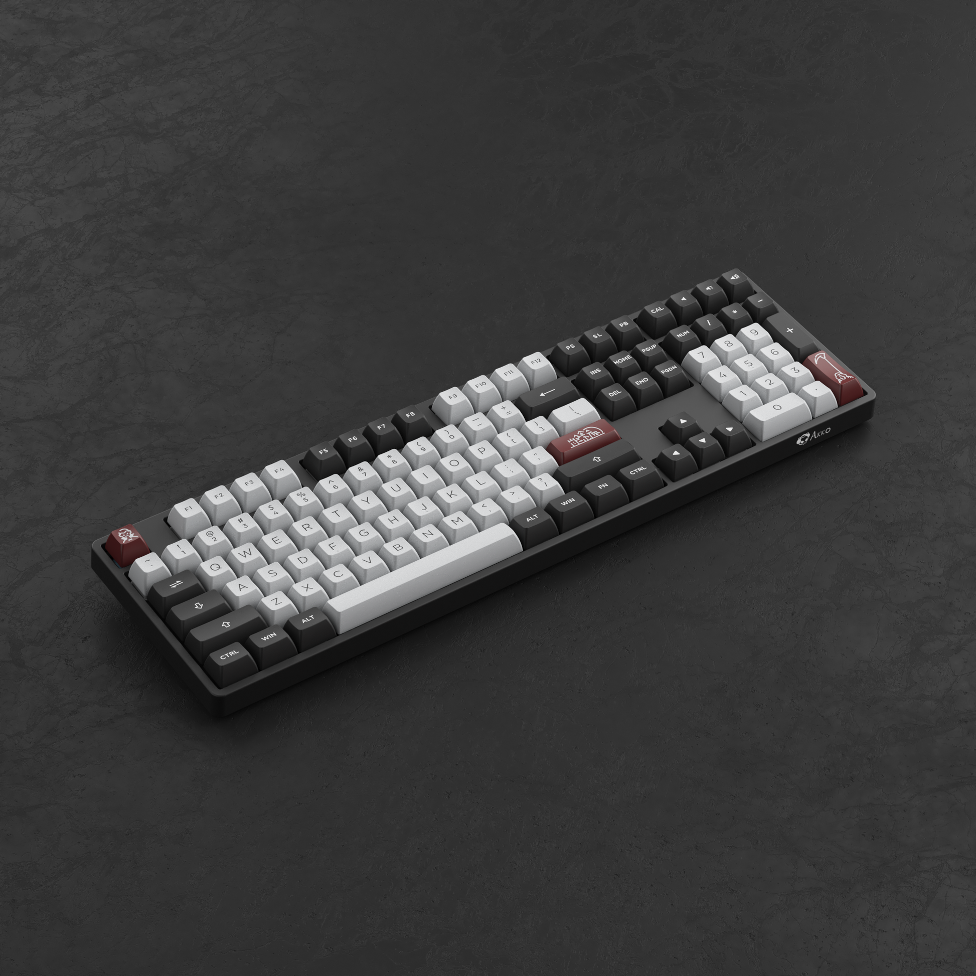 AKKO keyboard when connected to MacOS: (Ctrl -> Control | Windows -> Command | Alt -> Option, Mojave OS and above will adjust the order of these keys)