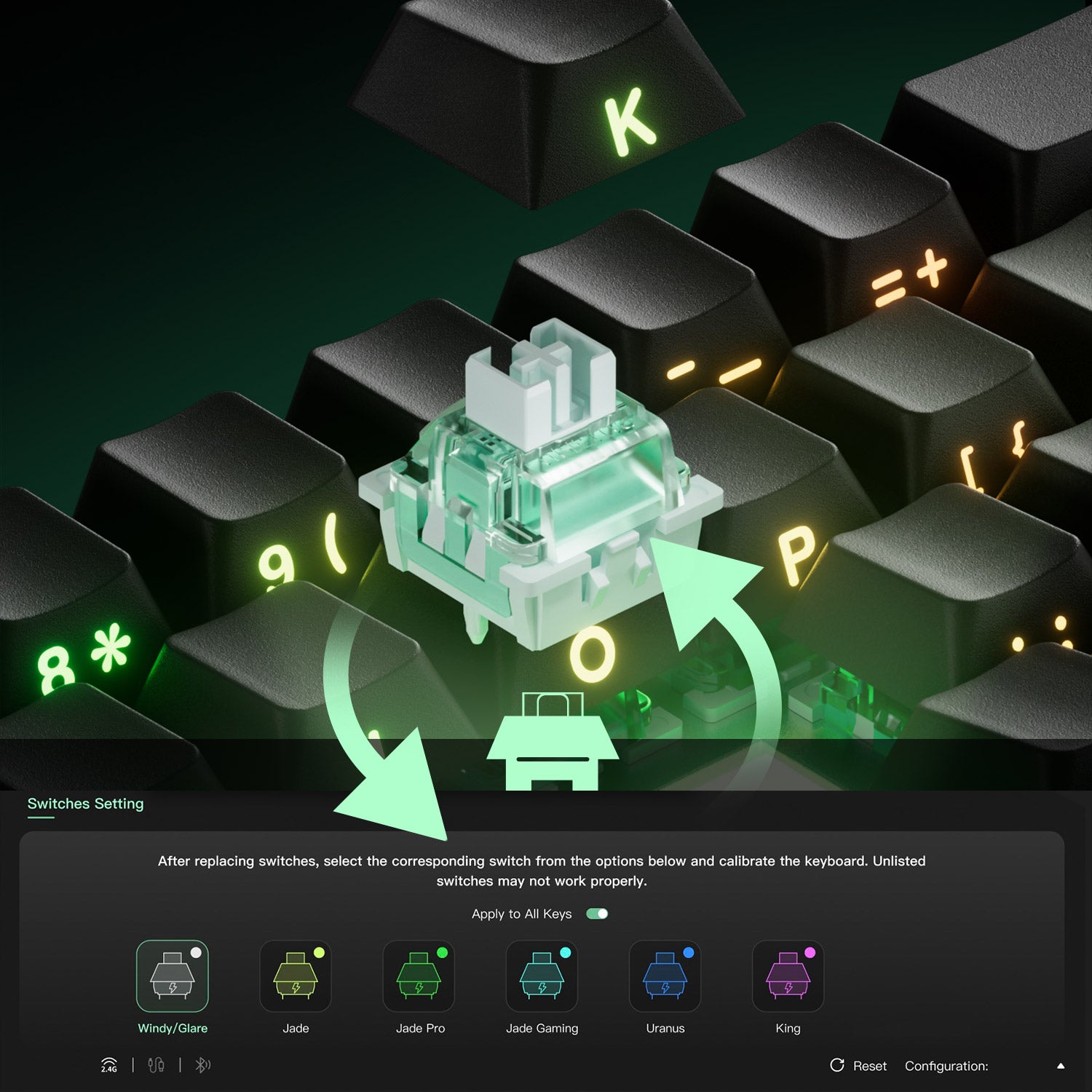 Die FUN68 HE Magnetic Keyboard ist mit 7 Magnetschaltern von Drittanbietern kompatibel. Benutzer können den gewünschten Schalter aus der Akko-Treiberliste auswählen und die Tastatur nach dem Austausch kalibrieren. Das Mischen von Schaltern ist ebenfalls möglich.