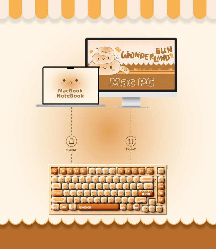 Die Tastatur MG108B Bun Wonderland verfügt über einen abnehmbaren USB-Typ-C-Anschluss, der Flexibilität für eine einfache Einrichtung und Portabilität bietet.