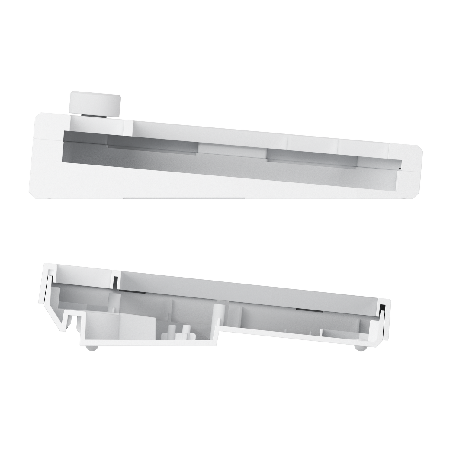 Oben sehen Sie einen Querschnitt unseres MOD 007B PC im Vergleich zu anderen Tastaturen (unten). Geformtes, dickes Gehäuse, um Resonanz zu verhindern. Bringt Ihnen ein besseres Tipperlebnis.