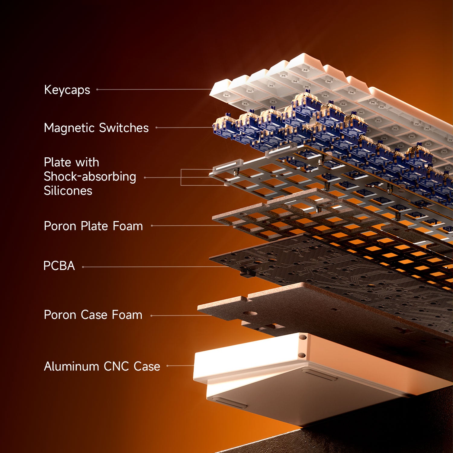 Die MOD68 HE Magnetic Keyboard verfügt über ARGB (adressierbares RGB) mit individuell steuerbaren LEDs für eine gleichmäßige, flimmerfreie Beleuchtung. Mit Alpha-Kanal-Integration und einer Bildwiederholfrequenz von 500 Hz bietet sie reichhaltigere dynamische Effekte und reduziert die visuelle Ermüdung – perfekt für Gaming und ästhetische Designs.