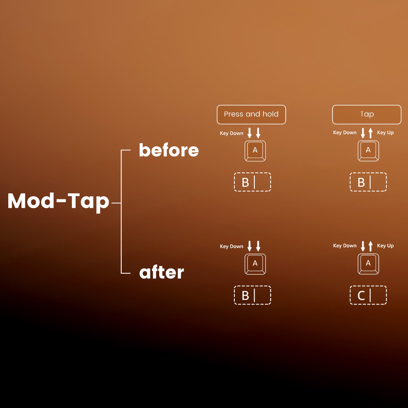 Mod-Tap ist ein Design, das Komfort für Spiele bietet. Es ermöglicht die Erstellung von dedizierten oder doppelfunktionalen Tasten basierend auf dem Tastendruckverhalten.