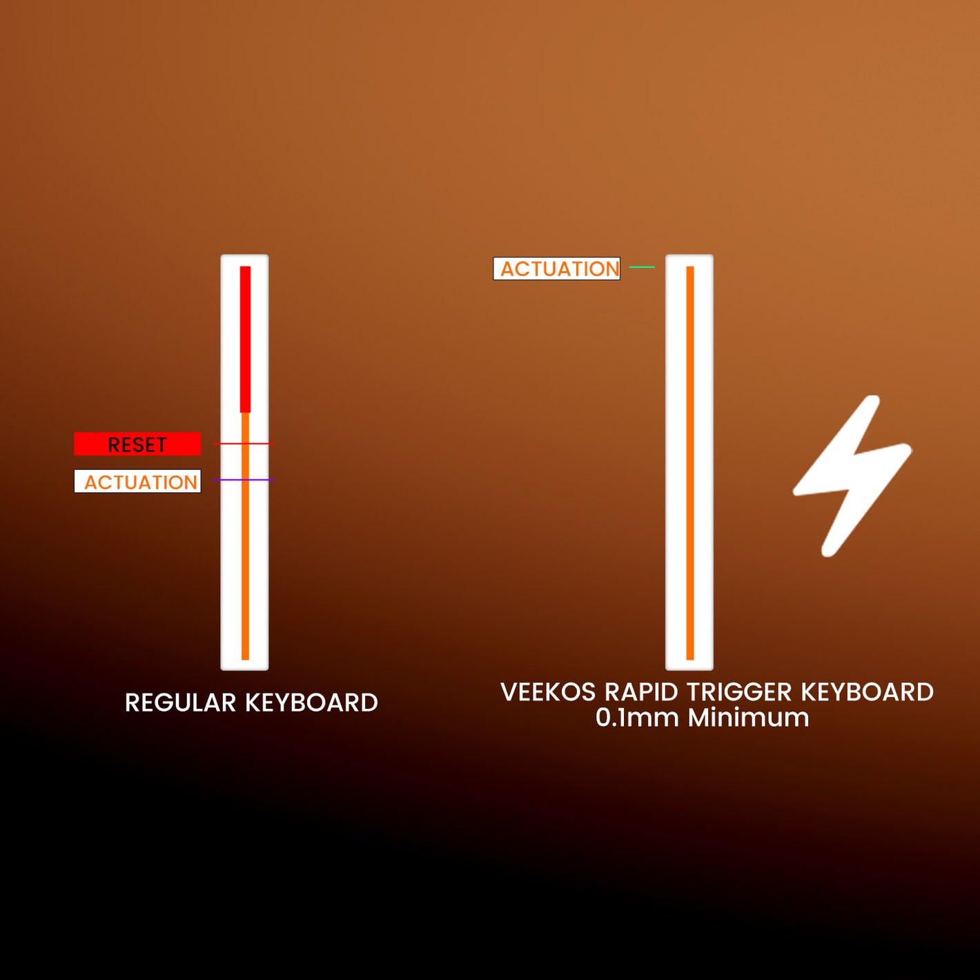 Mit diesen Magnetschaltern können Benutzer den Betätigungspunkt jeder Taste von 0,1 mm bis 3,4 mm einstellen, was verschiedene Arten des Drückens beim Spielen oder Tippen ermöglicht.