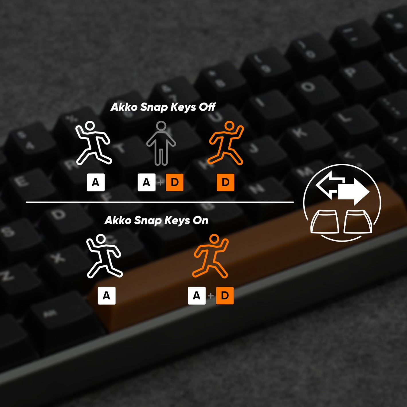 Snap Key ist Akko Implementierung von SOCD, die den letzten Tastendruck für schnelle Richtungsänderungen priorisiert, ohne vorherige Eingaben loszulassen. Dies sorgt für eine flüssige und reaktionsschnelle Steuerung, besonders in FPS-Spielen, wo schnelle Reaktionen und präzise Bewegungen entscheidend sind.