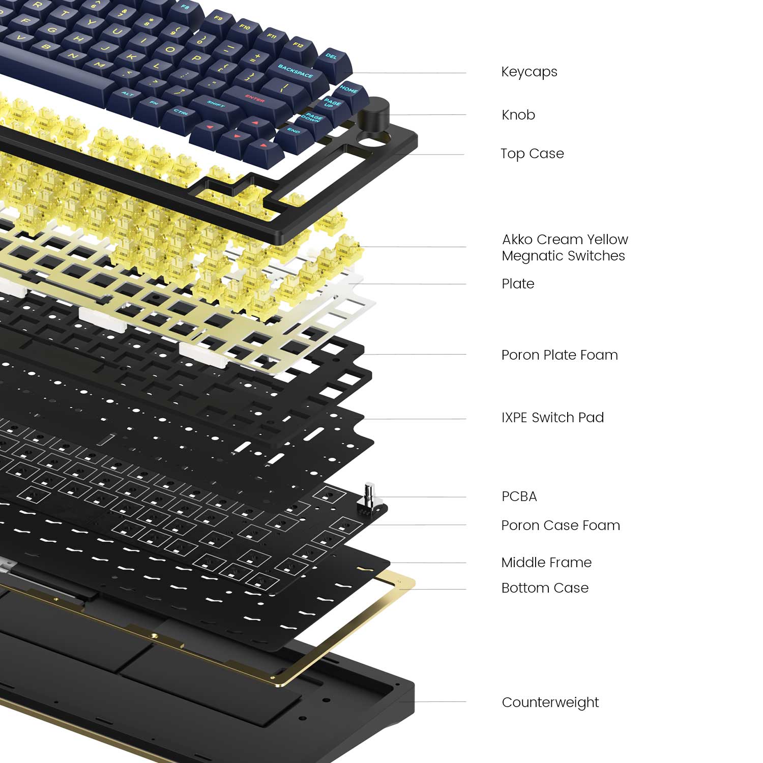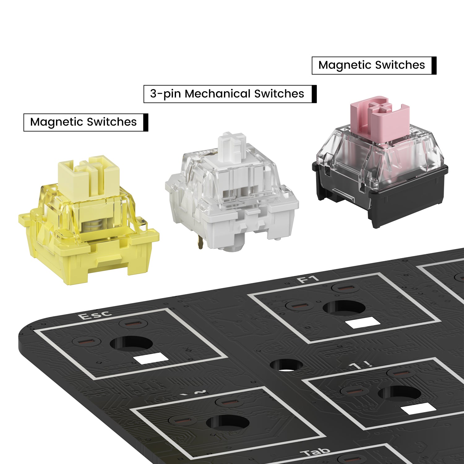 Die Akko-Tastatur mit magnetischen Schaltern ist Hot-Swap-fähig und mit allen 3-poligen mechanischen Schaltern kompatibel, so dass der Benutzer die Flexibilität hat, verschiedene Schaltertypen entsprechend seinen persönlichen Vorlieben zu installieren.