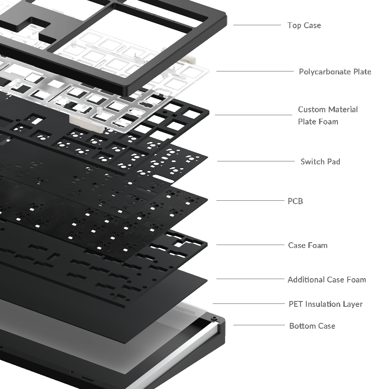 Bitte beachten Sie: Diese Tastatur ist eine Barebone-Tastatur und erfordert eine einfache Montage. Schalter und Tastenkappen (separat erhältlich).