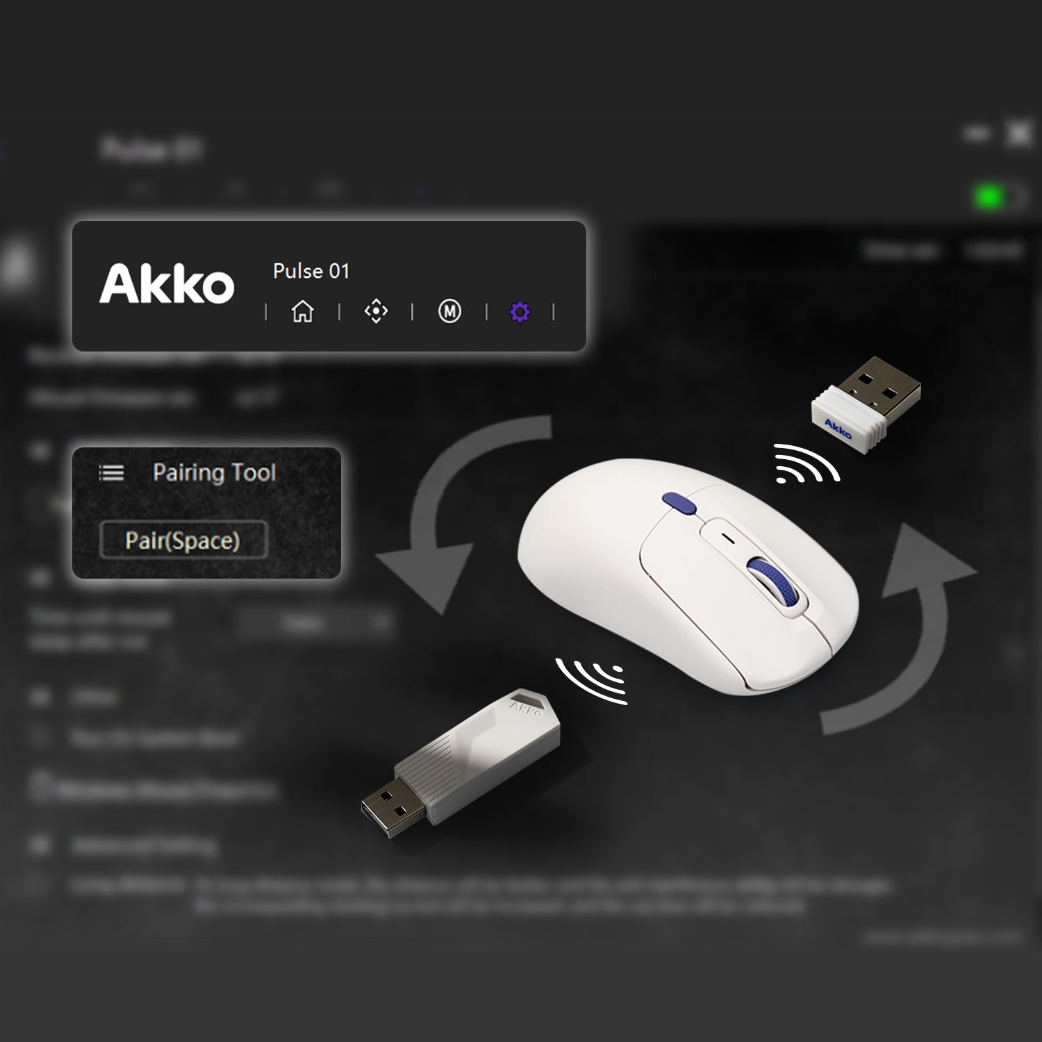 Die Akko Pulse 01 wird sowohl mit 8K- als auch mit 1K-Empfängern geliefert. Wenn Sie zwischen dem 1K- und dem 8K-Modus wechseln, müssen Sie den Empfänger austauschen und die Maus erneut mit dem Treiber koppeln.