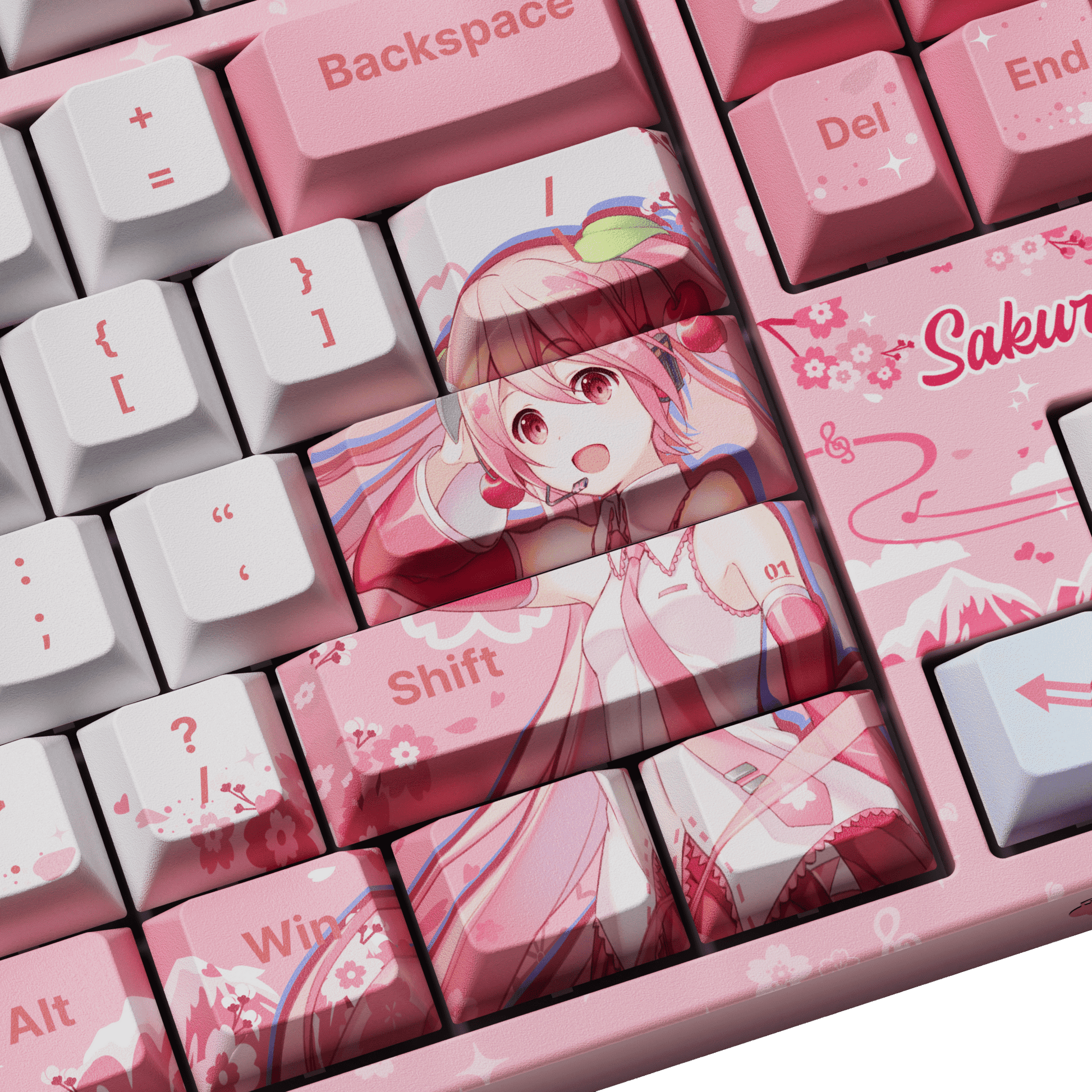 Die besonderen Tastenkappen sind mit niedlichen und entzückenden Aufdrucken verziert und zeichnen sich durch einzigartige Designs aus, die die Essenz von Sakura Miku einfangen. Diese Aufdrucke verleihen Ihrem Tipperlebnis eine verspielte und persönliche Note.