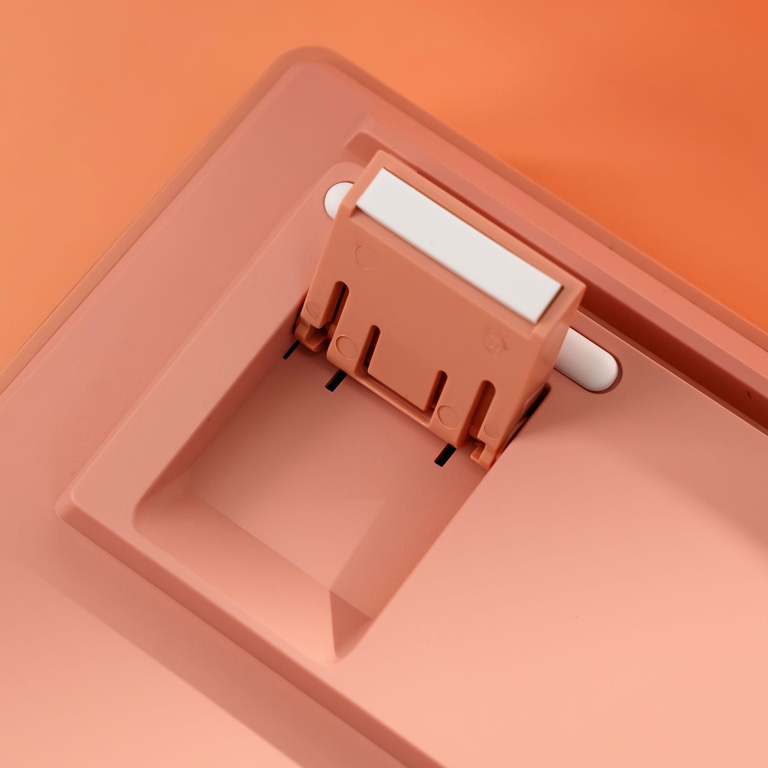 Die Tastatur verfügt über einen neigbaren Ständer mit drei Höheneinstellungen, sodass Sie den Tippwinkel mühelos für individuellen Komfort und eine bessere Ergonomie anpassen können.
